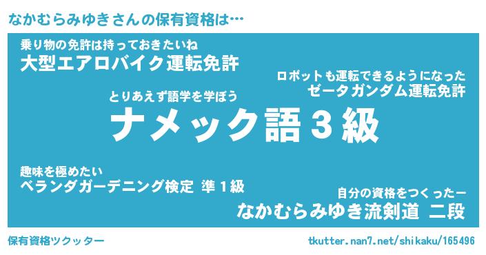 | 恥ずかしいあだ名 | 『プリティーなかむらみゆき』『なかちん』 |