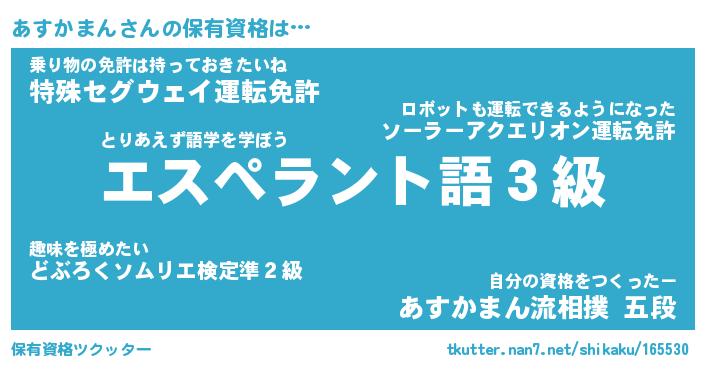 | 伝説のあだ名 | 『伝説の傭兵あすかまん』 |