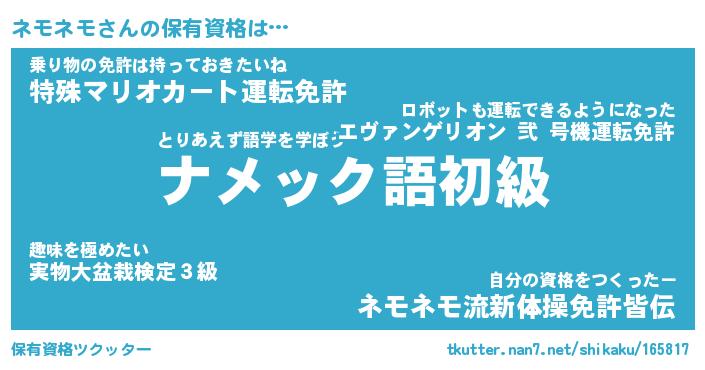 | 胡散臭い通販商品みたいなあだ名 | 『モテモテ間違いなし霊験あらたかなお札…その名も「ネモネモ」』 |