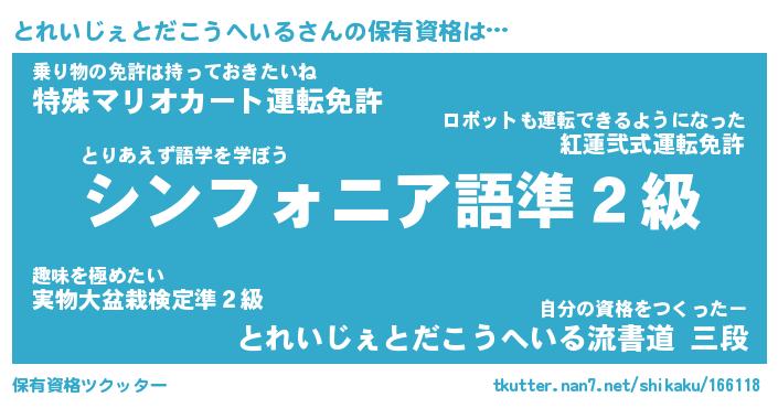 | 胡散臭い通販商品みたいなあだ名 | 『必ず成功する霊験あらたかなお札…その名も「とれいじぇとだこうへいる」』 |