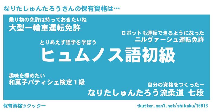 | ツイッター | なりたしゅんたろうさんのツイッターID『namakemono_nyan』 |