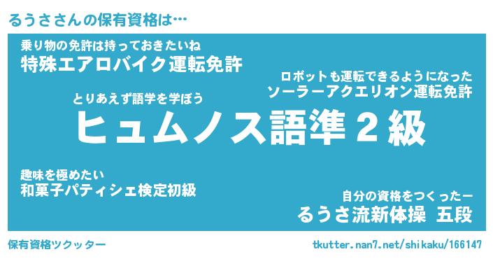 | ファンタジー風あだ名 | 『ルウフェル』『エターナルルウサー』 |