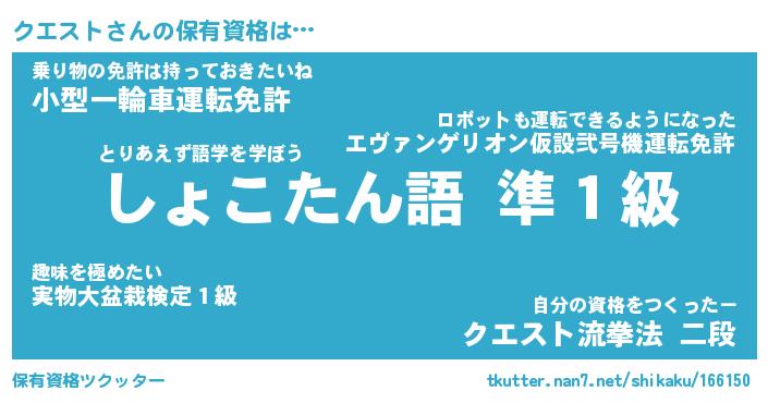肩書あだ名 | 『クエスト店長』『クエスト総理大臣』 |