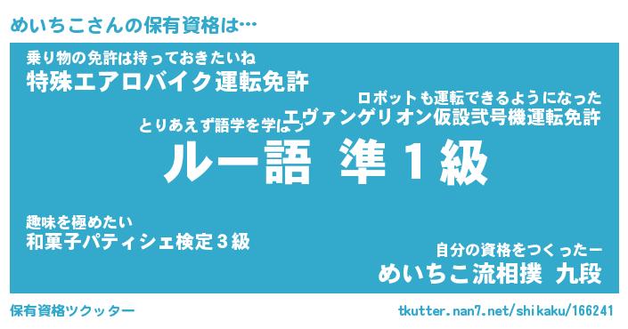 | ファンタジー風あだ名 | 『メイフェル』『エターナルメイチコー』 |