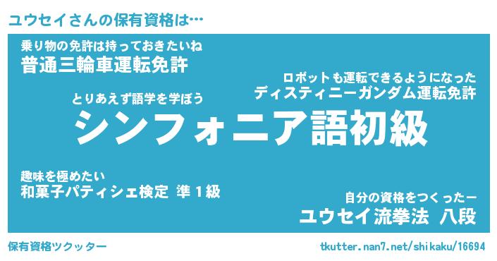 ファンタジー風あだ名 | 『ユウフェル』『エターナルユウセイー』 |