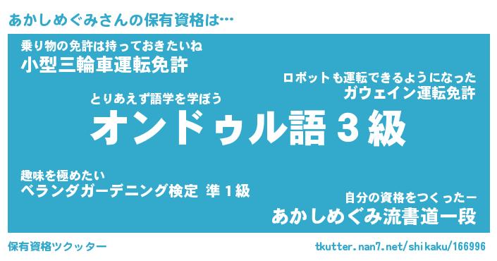 | ヒーロー風カッコイイあだ名 | 『スーパーアカシメグミ』『魔戒騎士アカ』 |