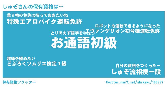 | 胡散臭い通販商品みたいなあだ名 | 『必ず成功する霊験あらたかなお札…その名も「しゅぞ」』 |