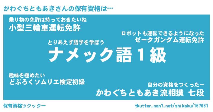| 意味不明あだ名 | 『ペロリンかわぐちともあき』 |