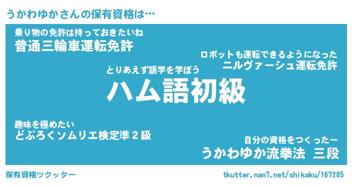 | ファンタジー風あだ名 | 『ウカフェル』『エターナルウカワユカー』 |