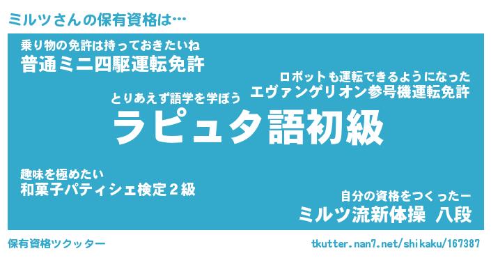 | 意味不明あだ名 | 『ペロリンミルツ』『ミルツフォーエバー』 |