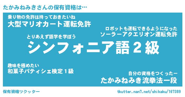 | 女子向けラノベタイトル風あだ名 | 『(仮)たかみねみきのやんごとなき事情』 |