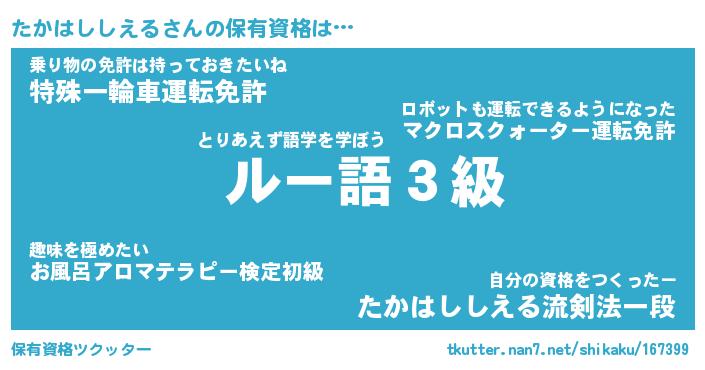 | 伝説のあだ名 | 『封印されし傭兵たかはししえる』 |