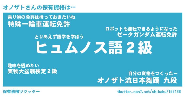 | ファンタジー風あだ名 | 『オノフェル』『エターナルオノザトー』 |