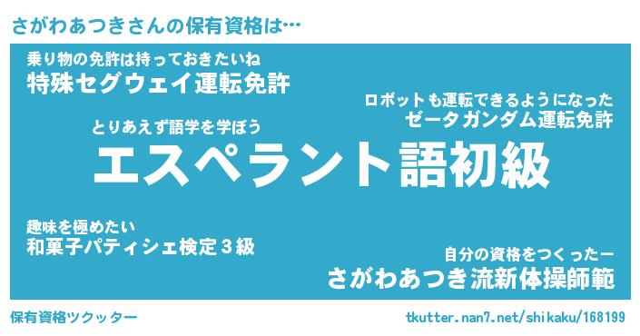 | 胡散臭い通販商品みたいなあだ名 | 『必ず成功する霊験あらたかなお札…その名も「さがわあつき」』 |