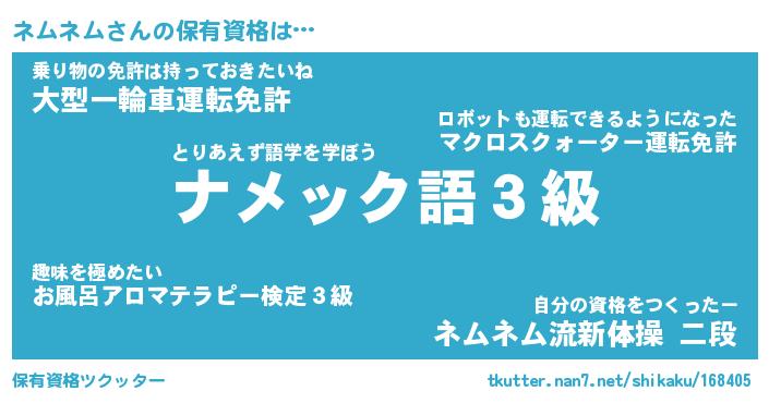 | ヘコむあだ名 | 『ネムにゅー』『なまこ酢』 |