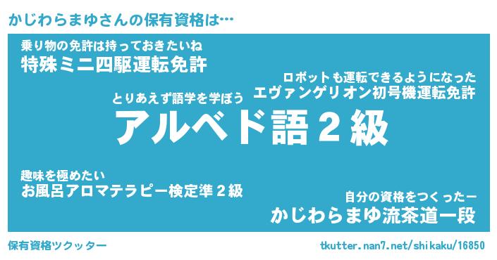 | 伝説のあだ名 | 『封印されし竜騎士かじわらまゆ』 |