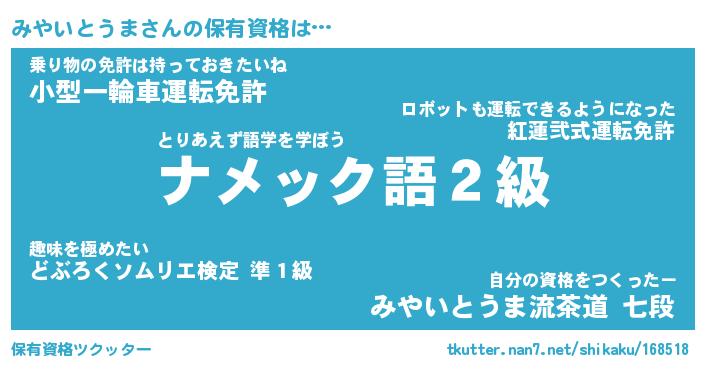 | 欧米人風あだ名 | 『マイケルみやいとうま』 |