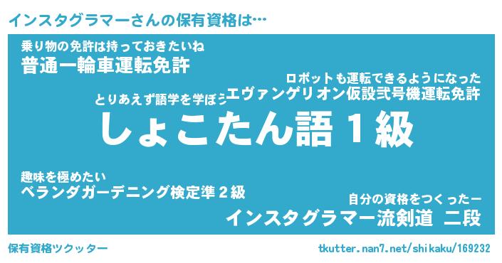 | 伝説のあだ名 | 『封印されし竜騎士インスタグラマー』 |