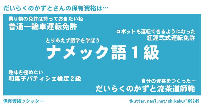 | ヘコむあだ名 | 『だいにー』『つくし』『だい太郎』 |