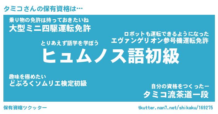 | ファンタジー風あだ名 | 『タミフェル』『エターナルタミコー』 |