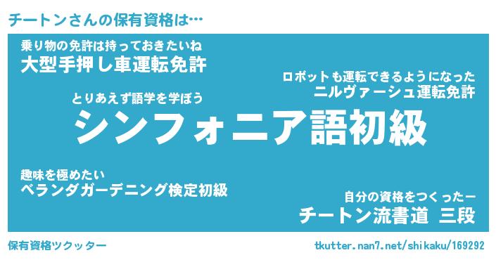 | 男性向けラノベタイトル風あだ名 | 『チートンの憂鬱』 |
