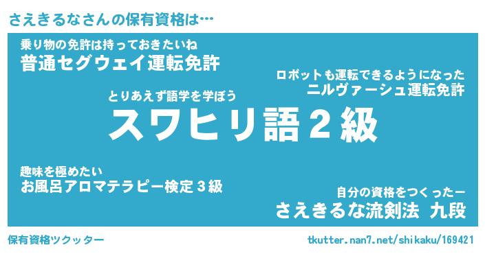 | ヒーロー風カッコイイあだ名 | 『スーパーサエキルナ』『魔戒騎士サエ』 |
