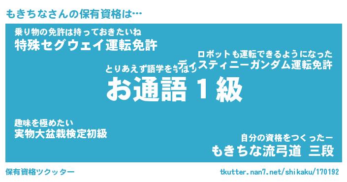 | ヒーロー風カッコイイあだ名 | 『スーパーモキチナ』『天弓騎士モキ』 |