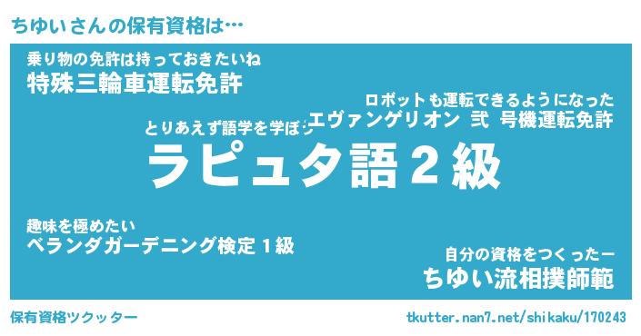 | ファンタジー風あだ名 | 『チユフェル』『エターナルチユイー』 |