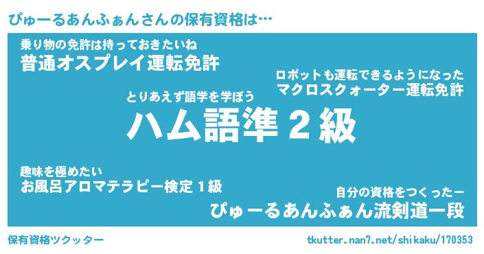 | ツイッター | ぴゅーるあんふぁんさんのツイッターID『katatsumuri_kun』 |