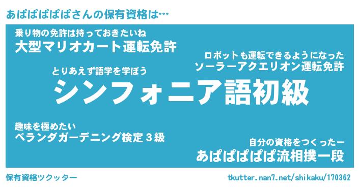 | 男性向けラノベタイトル風あだ名 | 『あぱぱぱぱぱの憂鬱』 |