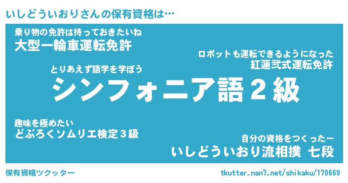 | 女子向けラノベタイトル風あだ名 | 『(仮)いしどういおりのやんごとなき事情』 |