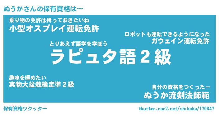| 女子向けラノベタイトル風あだ名 | 『ぬうか姫と円卓の騎士』 |