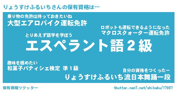 | 男性向けラノベタイトル風あだ名 | 『りょうすけふるいちの憂鬱』 |