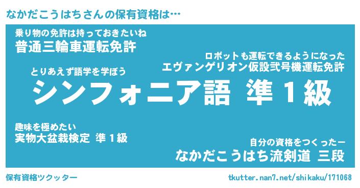 | 男性向けラノベタイトル風あだ名 | 『なかだこうはちの憂鬱』 |