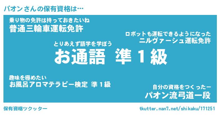 | 男性向けラノベタイトル風あだ名 | 『パオンの憂鬱』 |