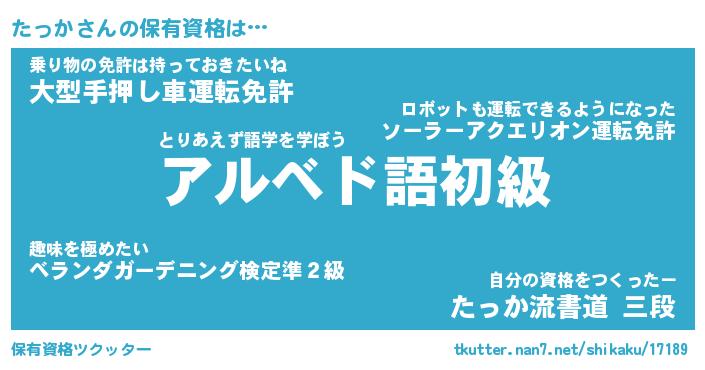 | ファンタジー風あだ名 | 『タッフェル』『エターナルタッカー』 |