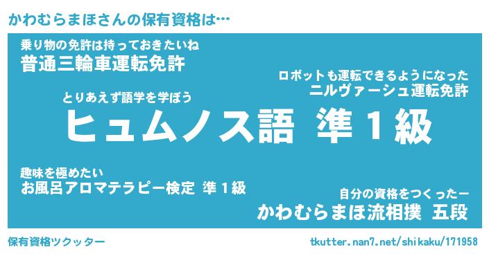 | 伝説のあだ名 | 『封印されし傭兵かわむらまほ』 |