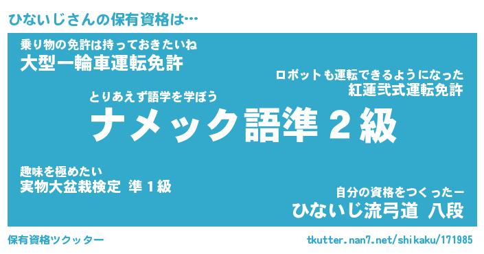 | 欧米人風あだ名 | 『マイケルひないじ』『ウサインひないじ』 |