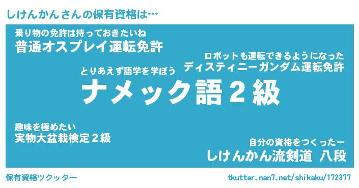 | ファンタジー風あだ名 | 『シケフェル』『エターナルシケンカンー』 |