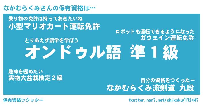 | ヒーロー風カッコイイあだ名 | 『スーパーナカムラクミ』『天弓騎士ナカ』 |