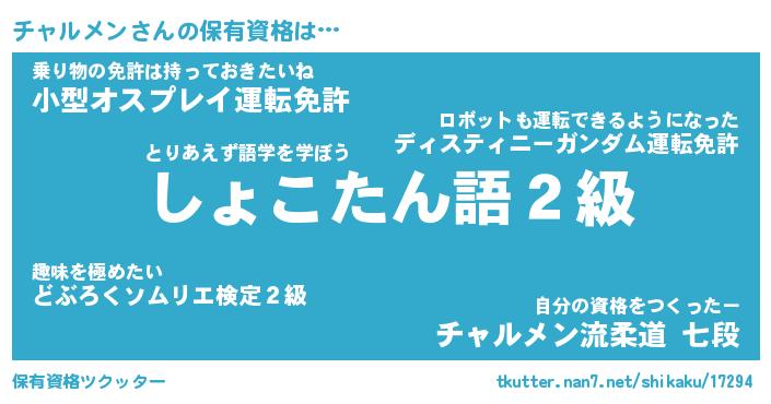 | ファンタジー風あだ名 | 『チャフェル』『エターナルチャルメンー』 |