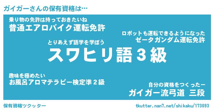 | 欧米人風あだ名 | 『マイケルガイガー』『ウサインガイガー』 |