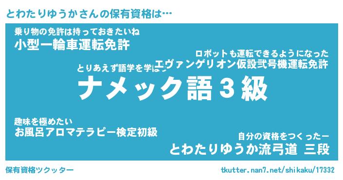 | 胡散臭い通販商品みたいなあだ名 | 『モテモテ間違いなし水晶球…その名も「とわたりゆうか」』 |