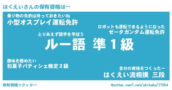 | ファンタジー風あだ名 | 『ハクフェル』『エターナルハクエイー』 |