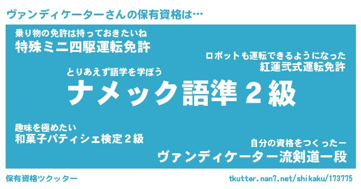 | 男性向けラノベタイトル風あだ名 | 『ヴァンディケーターの憂鬱』 |