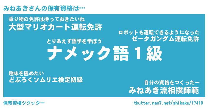 | 男性向けラノベタイトル風あだ名 | 『みねあきの憂鬱』 |