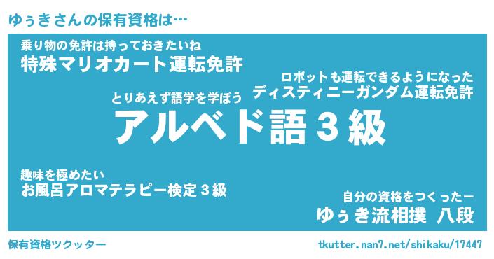 | ファンタジー風あだ名 | 『ユゥフェル』『エターナルユゥキー』 |