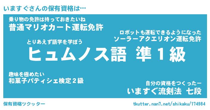 | ヒーロー風カッコイイあだ名 | 『スーパーイマスグ』『天弓騎士イマ』 |