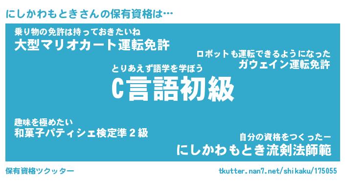 | 胡散臭い通販商品みたいなあだ名 | 『必ず成功する霊験あらたかなお札…その名も「にしかわもとき」』 |