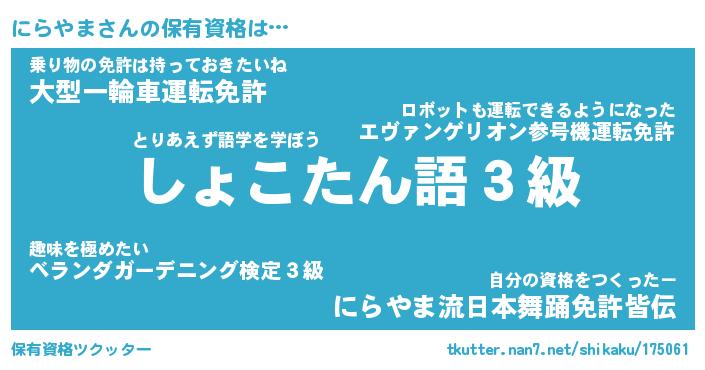 | ファンタジー風あだ名 | 『ニラフェル』『エターナルニラヤマー』 |